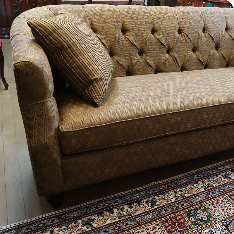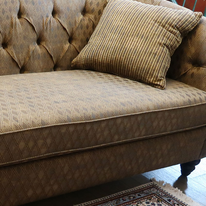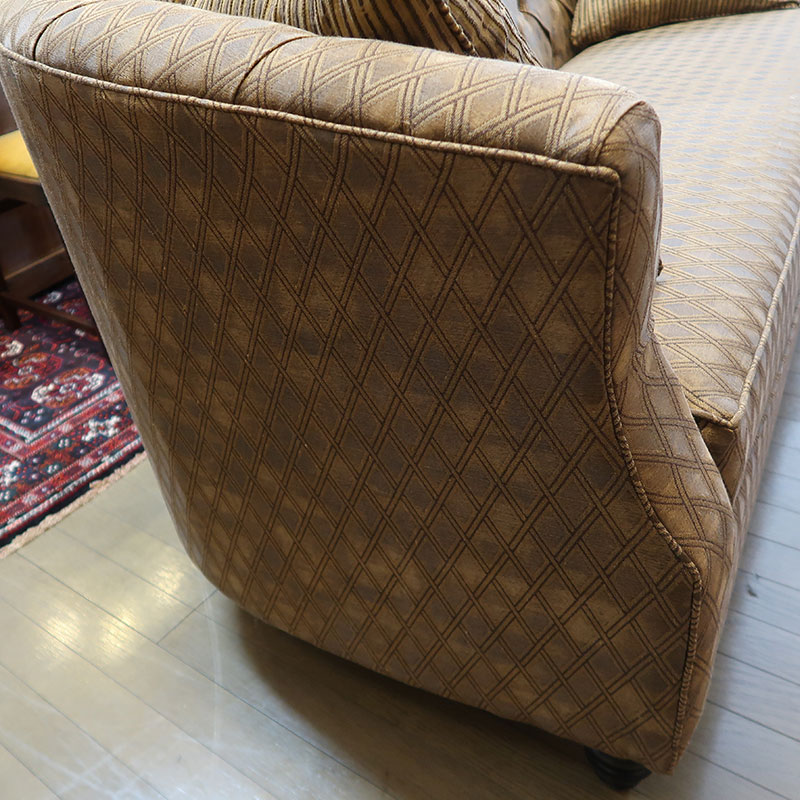 カナダ製の直輸入ソファーです。シートクッションは、ハイグレードウレタンを使用し、シートクッション下のデッキ部分はスプリング構造になっています。織り柄の入った高級なファブリックは、お部屋を選ばず、コーディネートのしやすさも魅力の三人掛けソファーです。