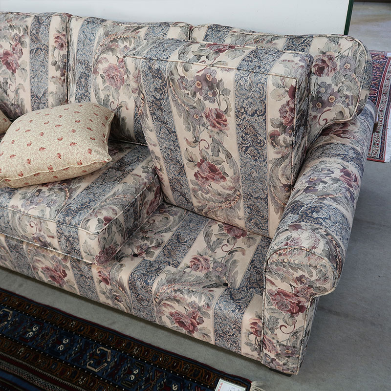 カナダ製の直輸入ソファーです。シートクッションは、ハイグレードウレタンを使用し、シートクッション下のデッキ部分はコイルスプリング構造になっています。織り柄の入った高級なファブリックは、お部屋を選ばず、コーディネートのしやすさも魅力の三人掛けソファーです。