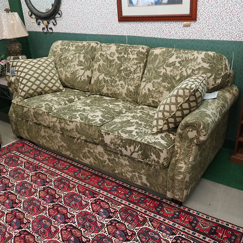 カナダ製の直輸入ソファーです。シートクッションは、ハイグレードウレタンを使用し、シートクッション下のデッキ部分はコイルスプリング構造になっています。織り柄の入った高級なファブリックは、お部屋を選ばず、コーディネートのしやすさも魅力の三人掛けソファーです。