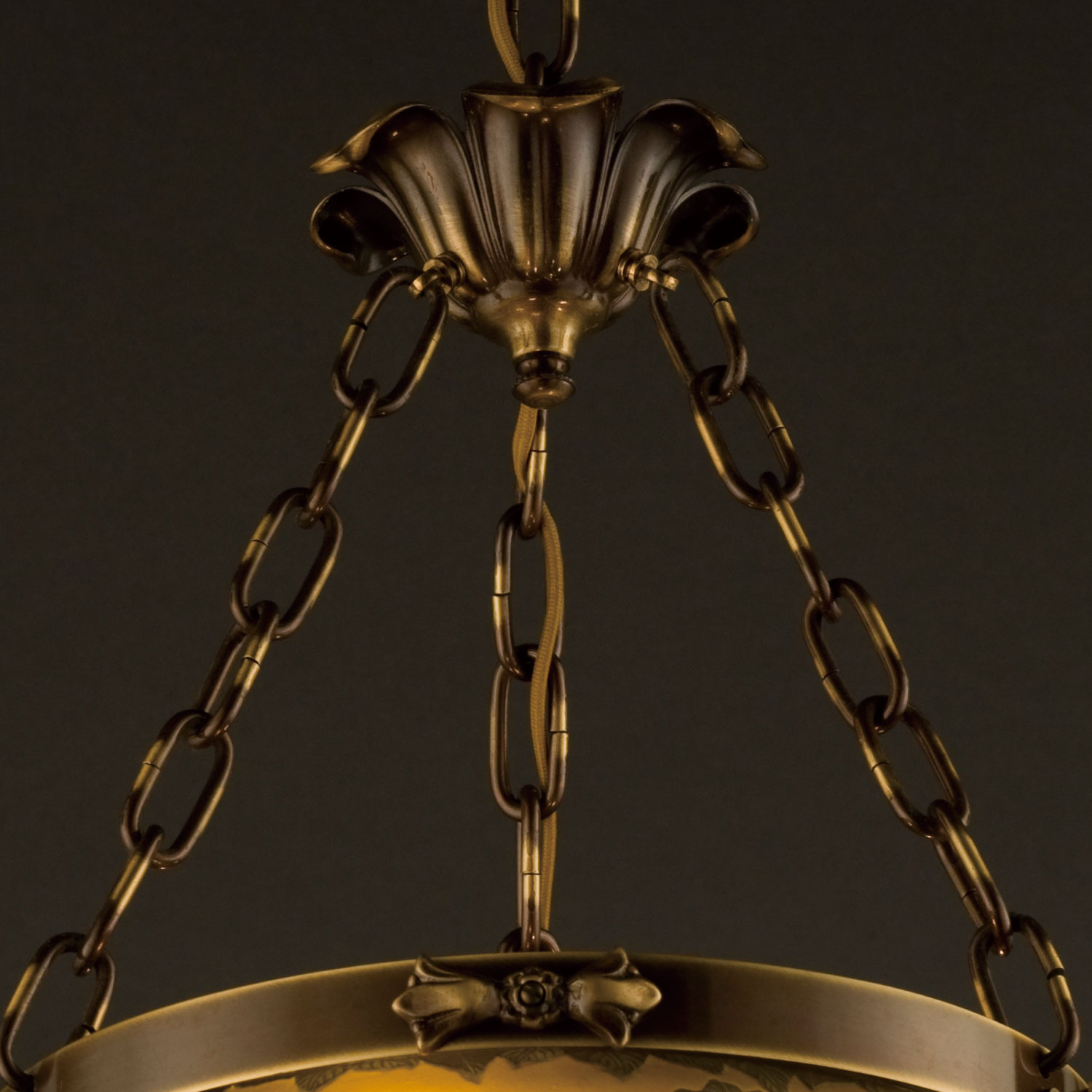GALLE COLLECTIONのシリーズは、単なるガレランプの模倣ではなく、そのガラスの製法と作風を生かしつつ、これをクラシックスタイルのメタルフレームと組み合わせることで生み出された、全く新しいデザインの照明器具です。