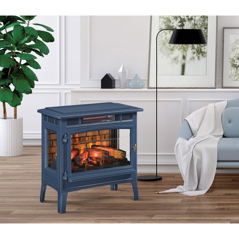 3Dパワーヒート薪ストーブ ネイビー色 1000W ロイド 送料無料