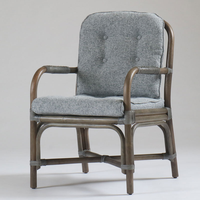籐・ラタンニューローゼルGR色ダイニング3点セット(アームダイニングチェア×2脚)