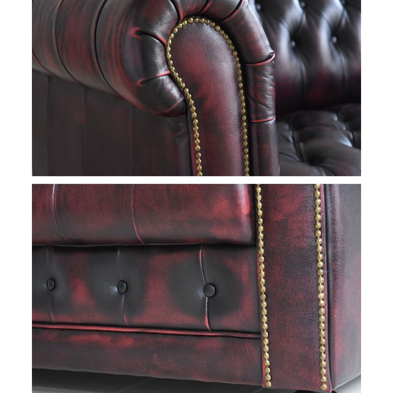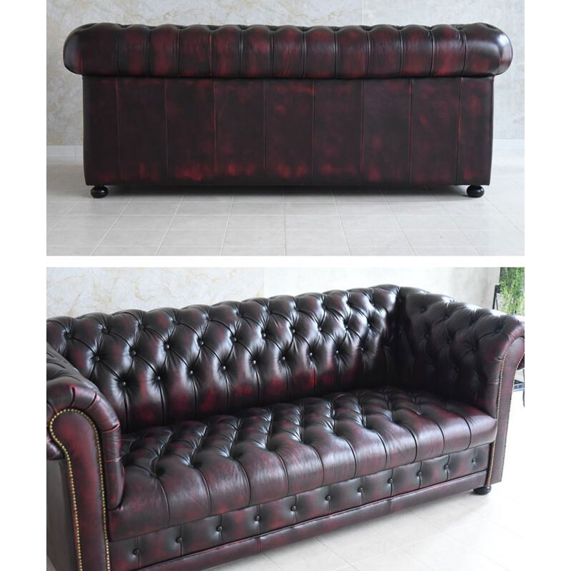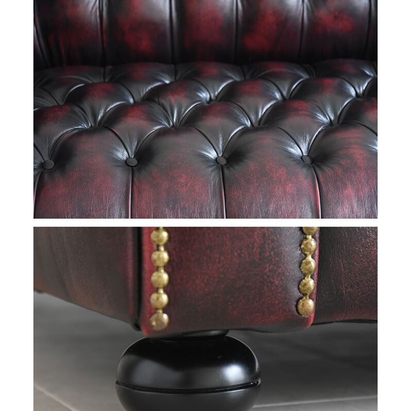 ドイツ製本革レザー チェスター3人掛けソファー ウオッシュオフBURGUNDY