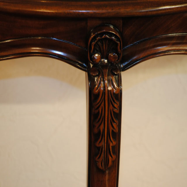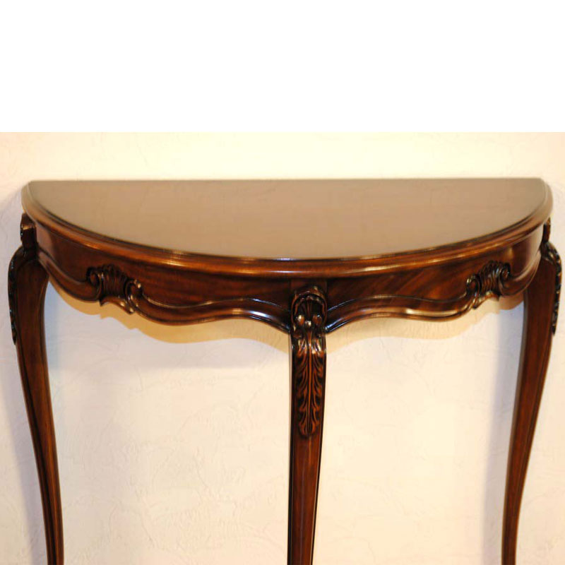 (北海道、沖縄、離島等一部地域を除く) 高級マホガニー材で作られたマホガニー 三脚ハーフムーンテーブル(大)。