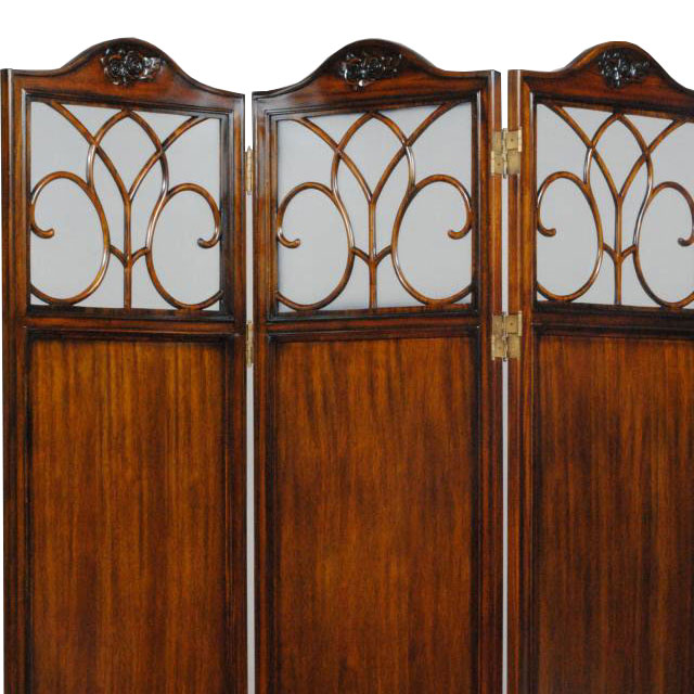 高級マホガニー材で作られた3折屏風(スクリーン) 木面【輸入家具】