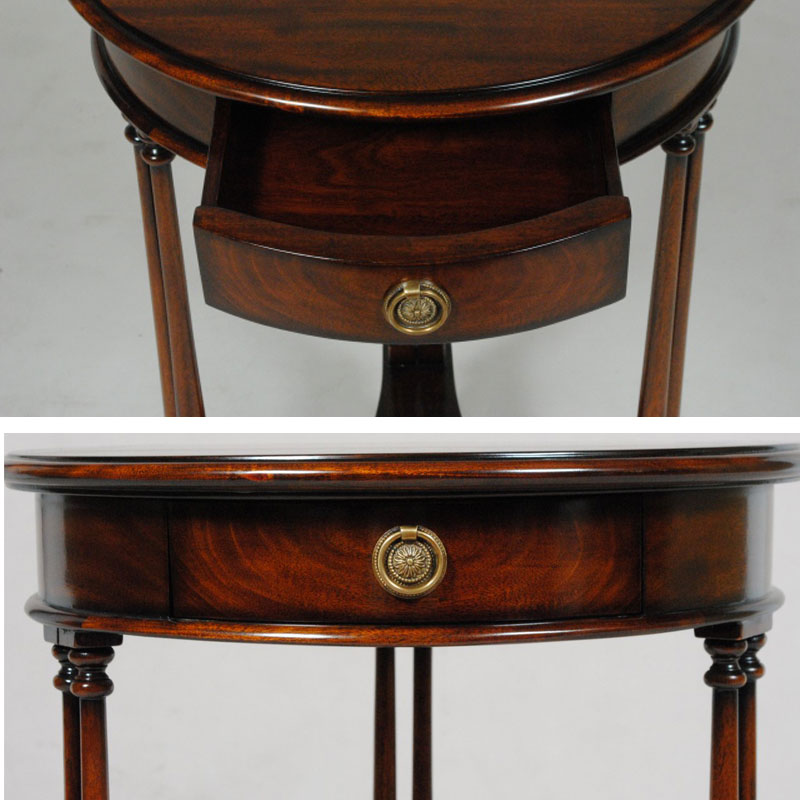 高級マホガニー材で作られた丸型電話台(引出一杯付)【輸入家具】