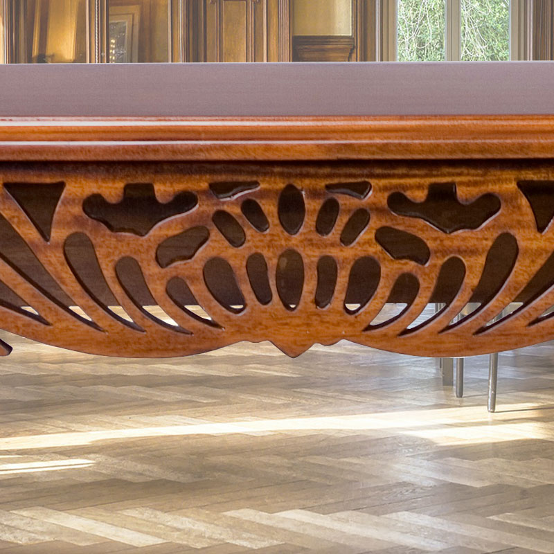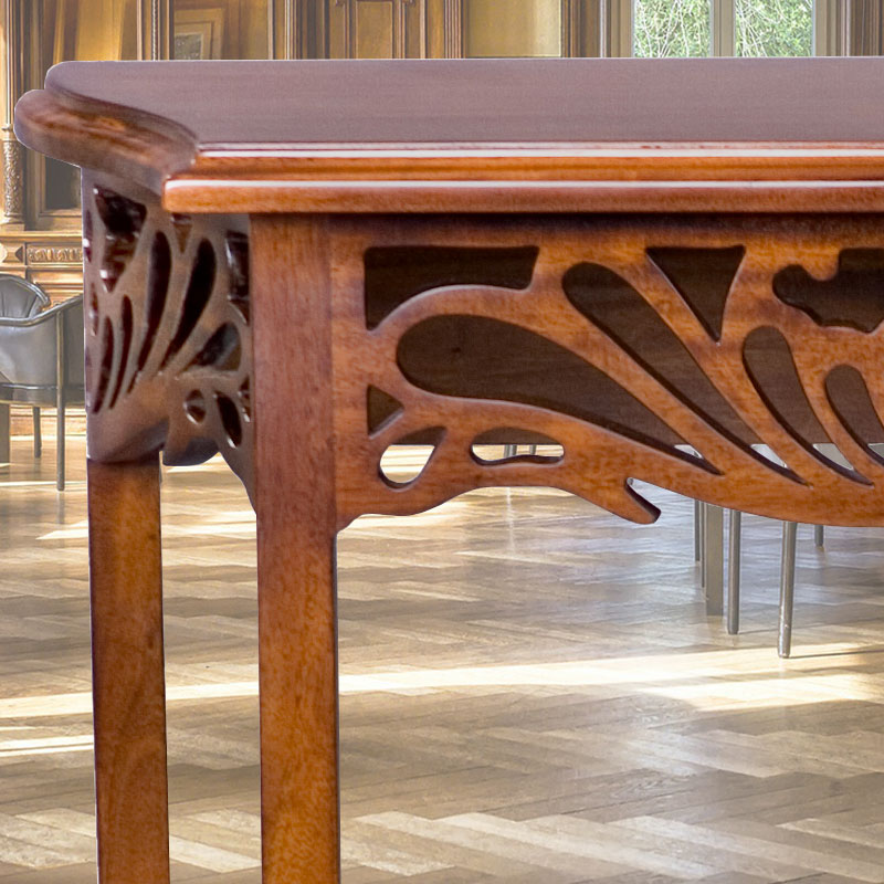 (北海道、沖縄、離島等一部地域を除く) 高級マホガニー材で作られた透かし彫りがおしゃれなコンソール。