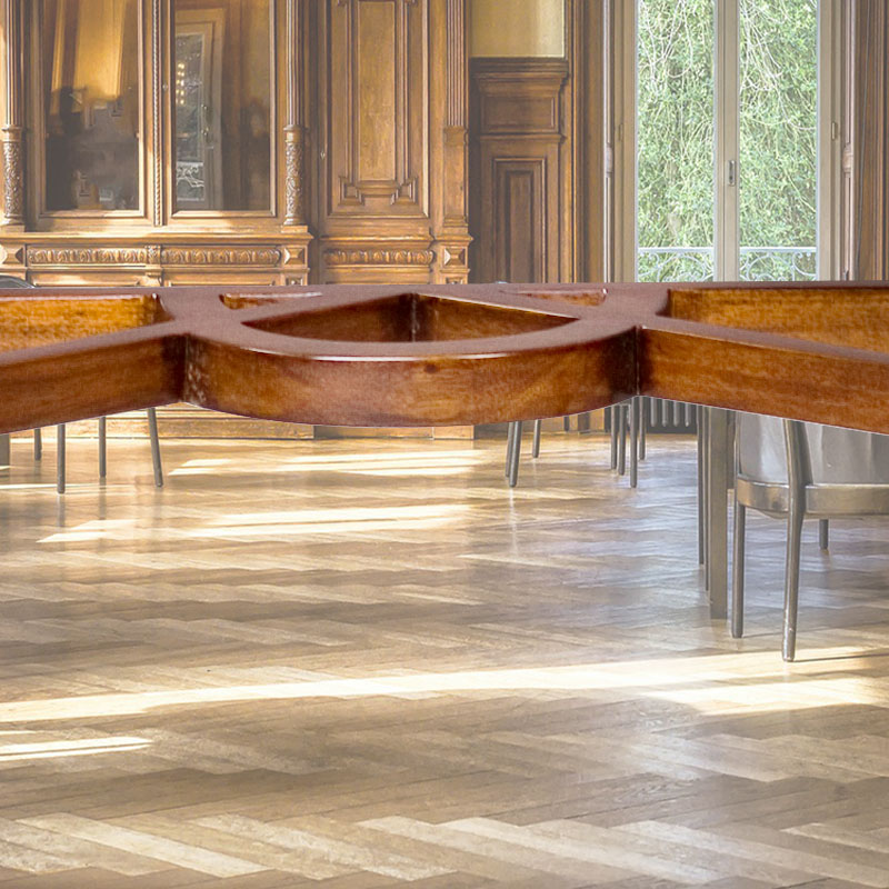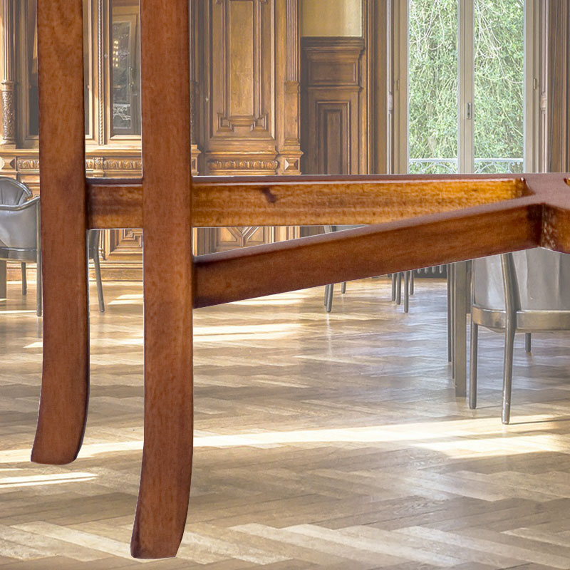 4本の脚のつなぎ部分は、格子状で、しかも、中間に半円型のつなぎ部分がデザインされ匠の技がひかる逸品です。