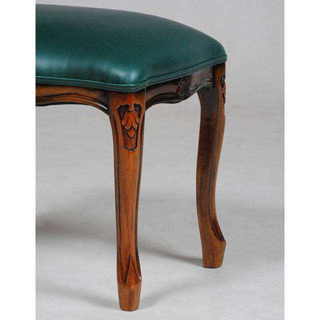 高級マホガニー材で作られたヨーロピアングリーン色の合成皮革張りのドレッサースツール【輸入家具】