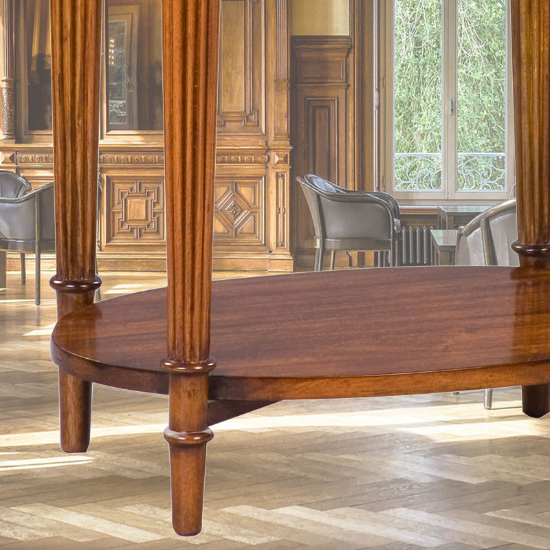 天板縁には彫刻が入り、4本脚のつなぎには、テーブルが使われている。