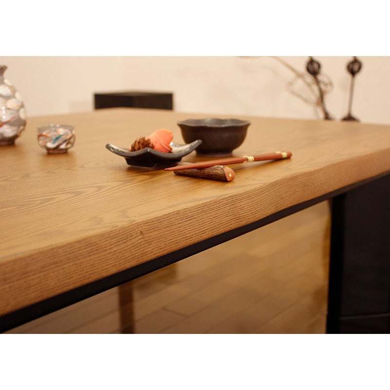 天板は、タモ無垢接ぎ材を使った樹のぬくもりが伝わってくる重厚な天板板。