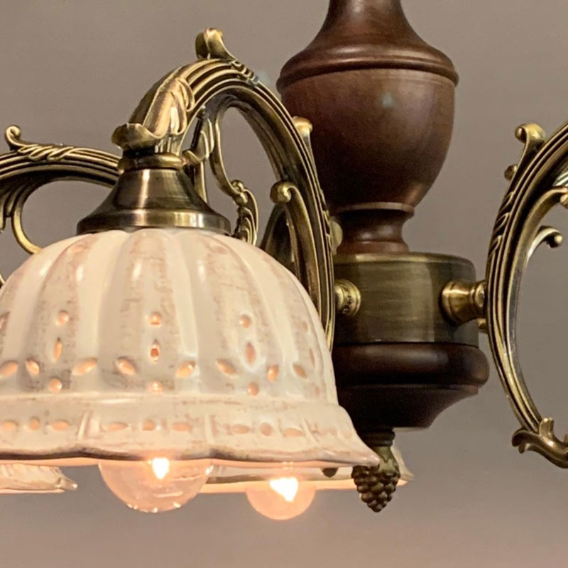 鋳物アームにイタリア製の陶器シェードを合わせました3灯シャンデリア照明