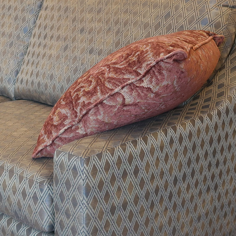 落ち着きのある茶系(ゴールド色系)の格子柄ファブリックは、やはりカナダ製ならではの高級感とかけ心地を実現しています。