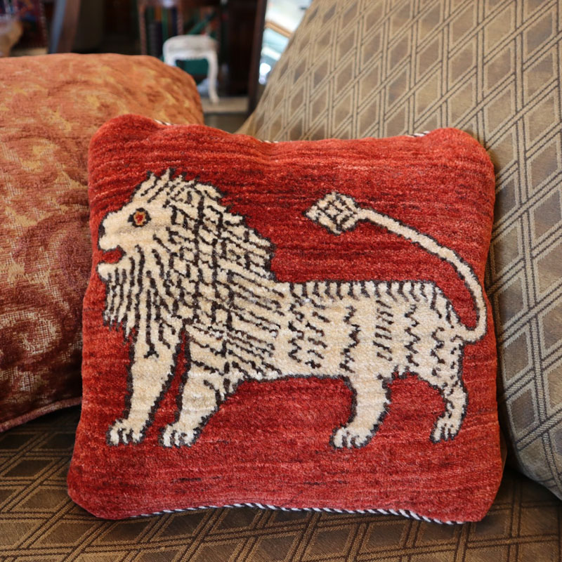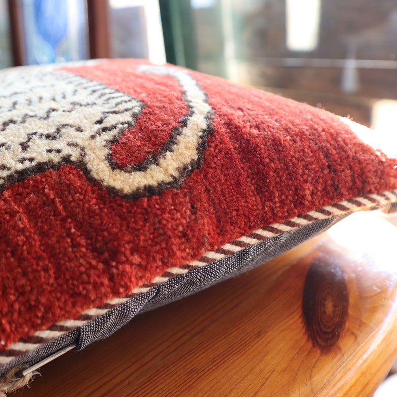 ペルシャ絨毯の中でも最近、ギャッベの人気が高いですが、こちらは、ギャッベでクッションカバーをつくりました。