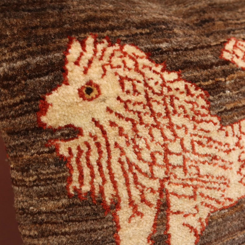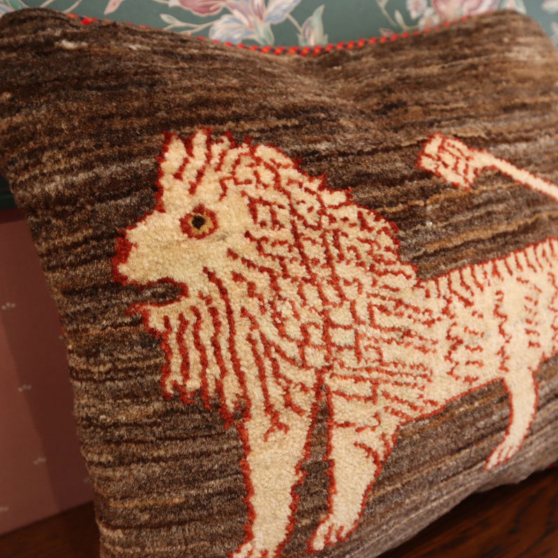 茶系のライオンギャベクッション。