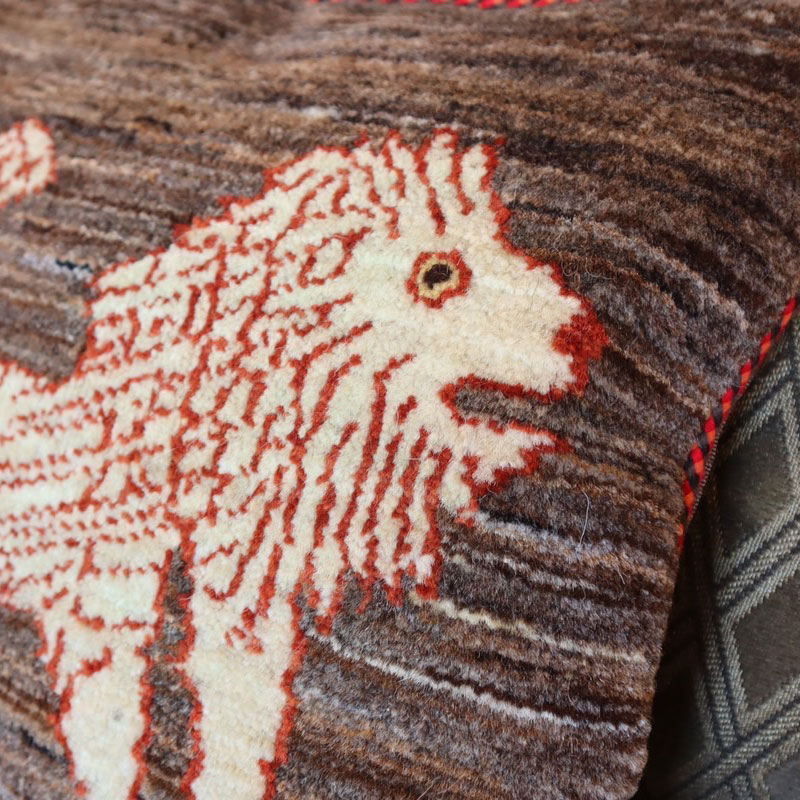 ペルシャ絨毯の中でも最近、ギャッベの人気が高いですが、こちらは、ギャッベでクッションカバーをつくりました。