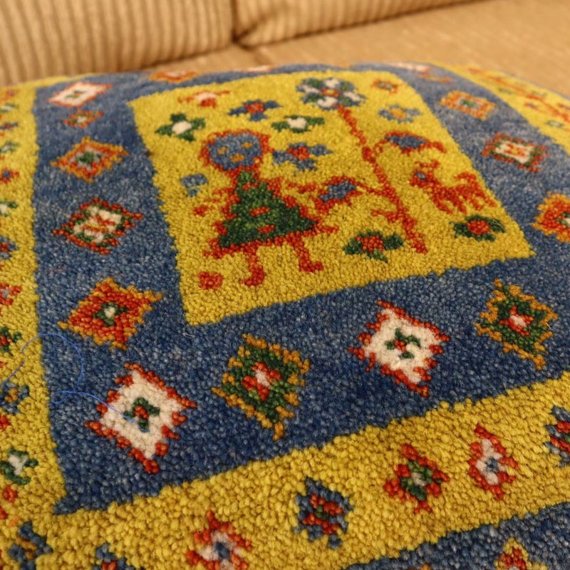 ペルシャ絨毯の中でも最近、ギャッベの人気が高いですが、こちらは、上質なヤラメギャッベでクッションカバーをつくりました。