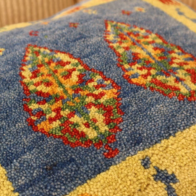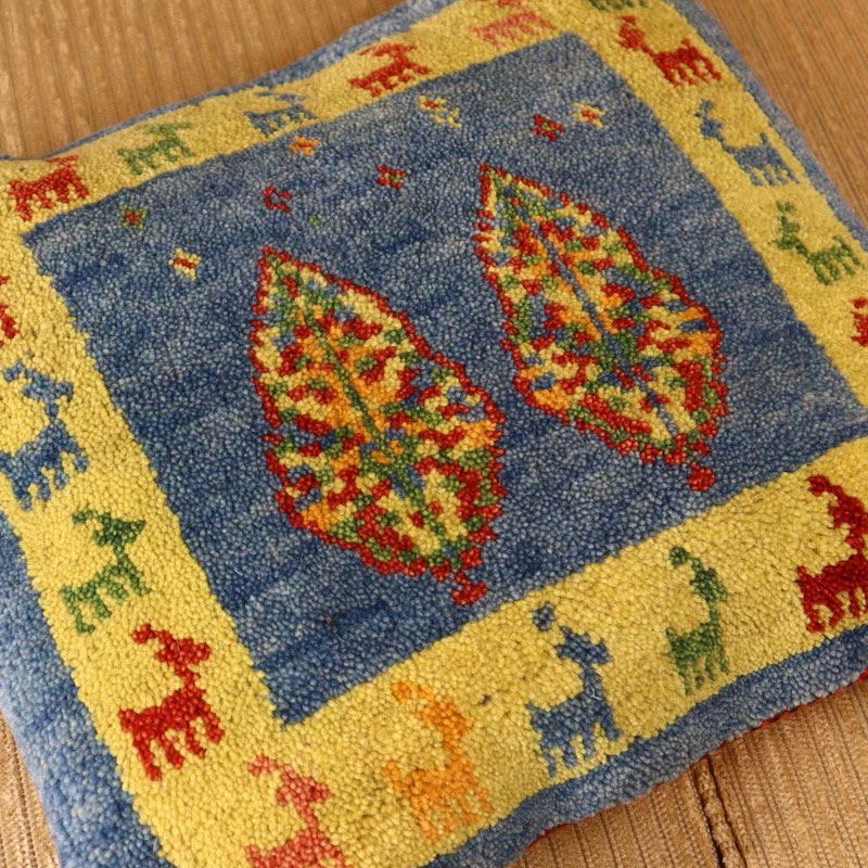 ペルシャ絨毯の中でも最近、ギャッベの人気が高いですが、こちらは、上質なヤラメギャッベでクッションカバーをつくりました。