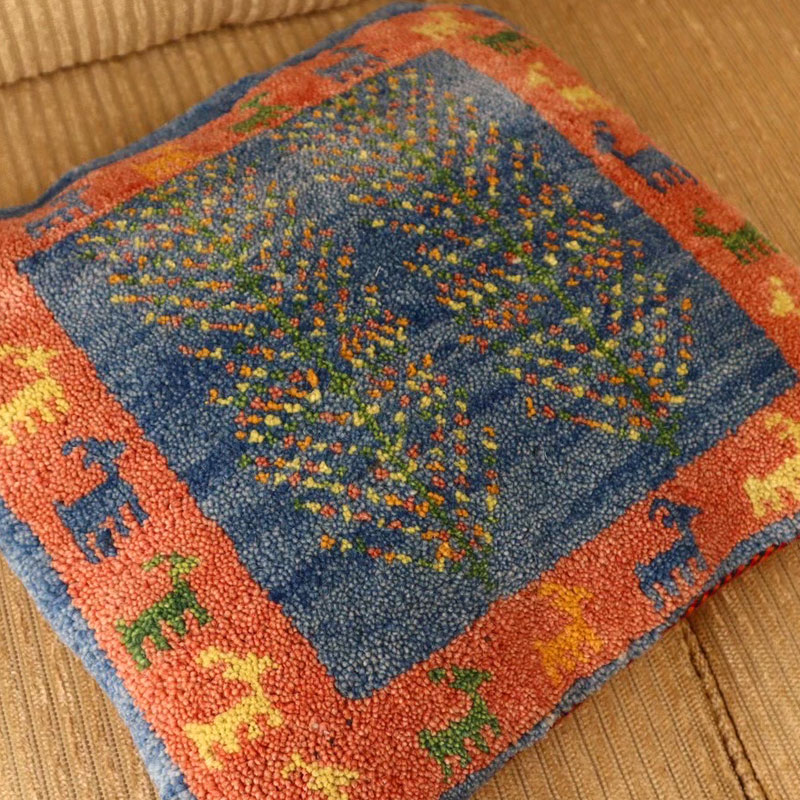 ペルシャ絨毯の中でも最近、ギャッベの人気が高いですが、こちらは、上質なヤラメギャッベでクッションカバーをつくりました。