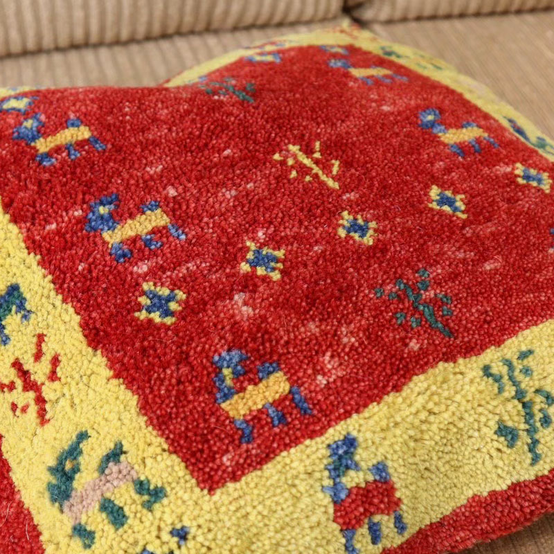 ペルシャ絨毯の中でも最近、ギャッベの人気が高いですが、こちらは、上質なヤラメギャッベでクッションカバーをつくりました。