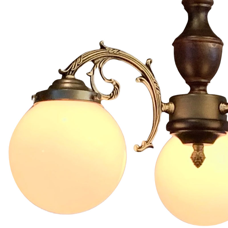 鋳物アームにレトロな雰囲気の丸ガラスを合わせた3灯シャンデリア照明