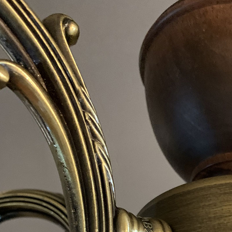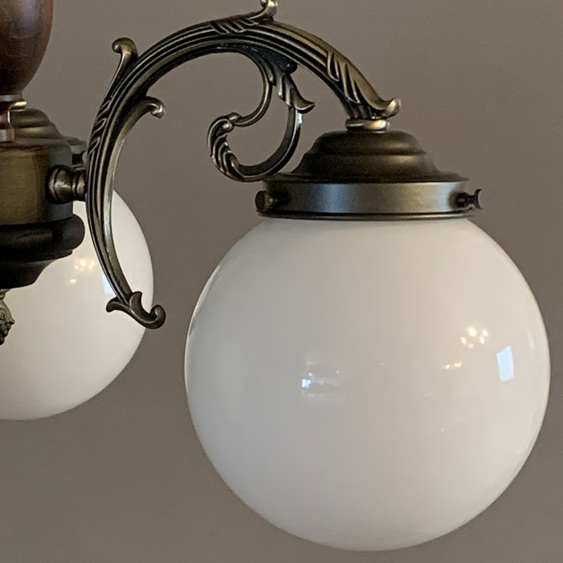 輸入パーツをアレンジし製作するクラシカオリジナルの3灯シャンデリアです。鋳物アームにレトロな雰囲気の丸ガラスを合わせました。