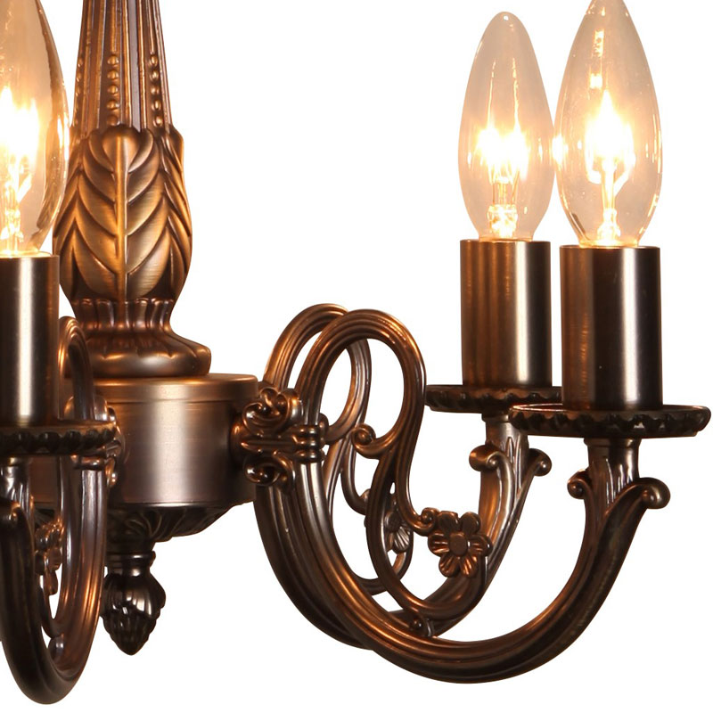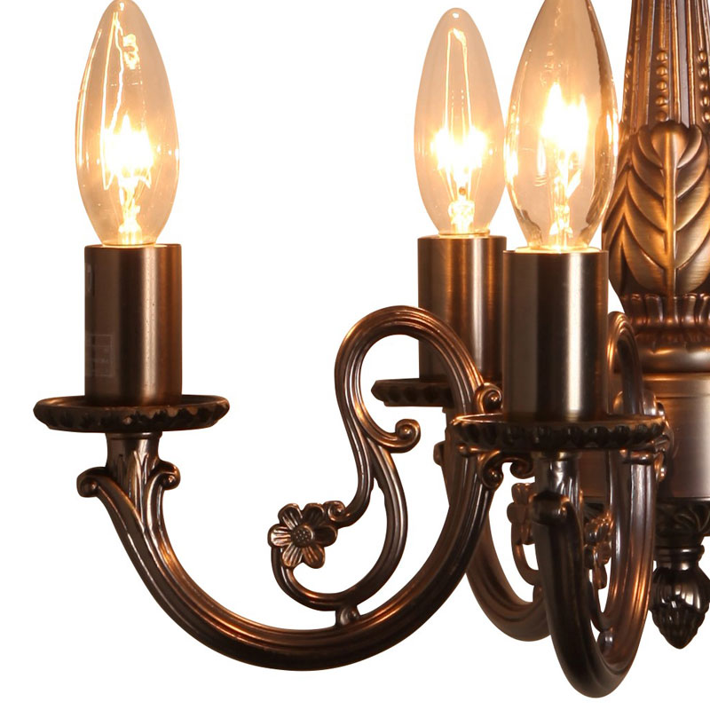 鋳物メッキのフレームがクラシカルなブロンズ色の5灯シャンデリア照明