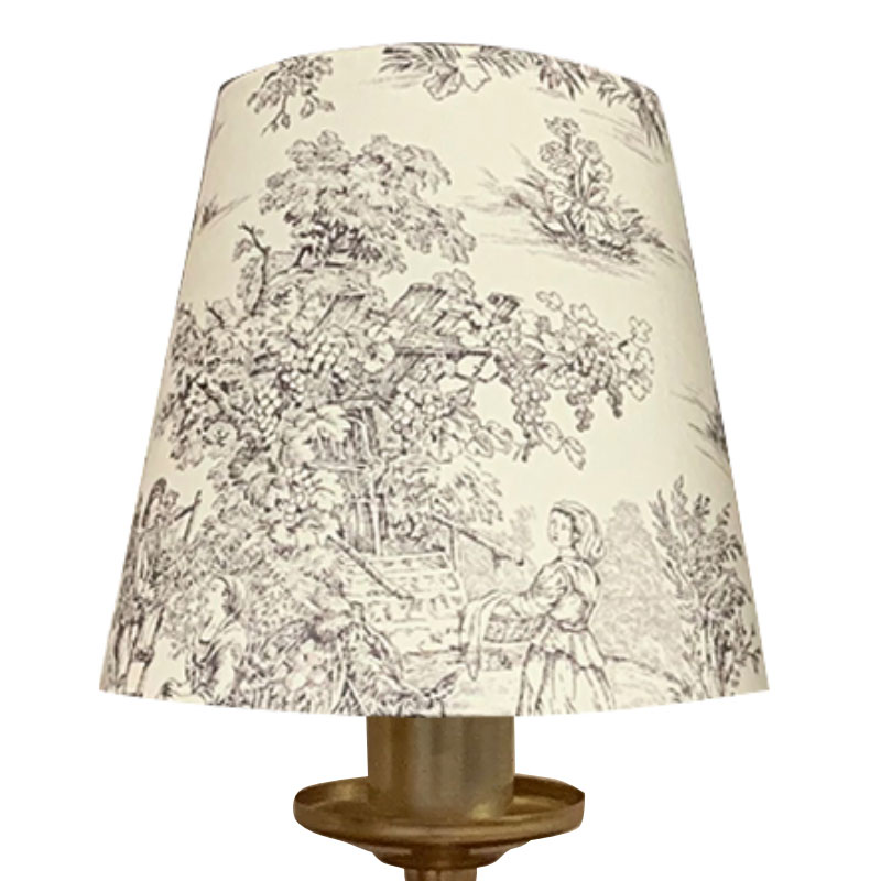 フランス伝統のトワル・ド・ジュイ デザイン生地を使用したミニテーブルランプ。