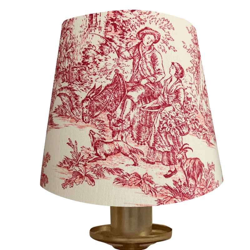 フランス伝統のトワル・ド・ジュイ デザイン生地を使用したミニテーブルランプ。トワル・ド・ジュイ とは、18世紀のデザインをモチーフとしたフランスの伝統的なデザイン生地のことです。