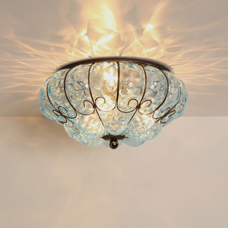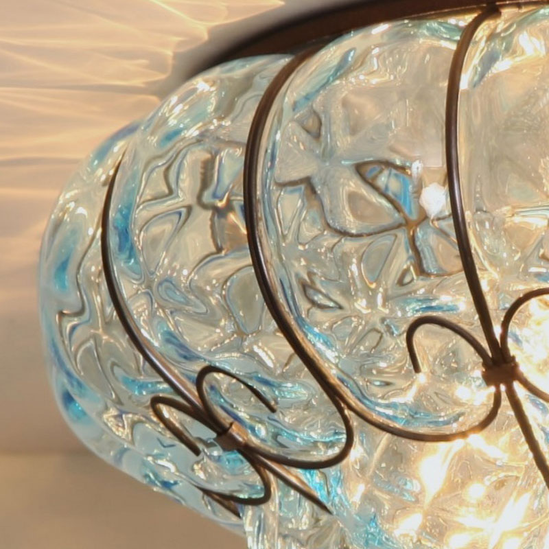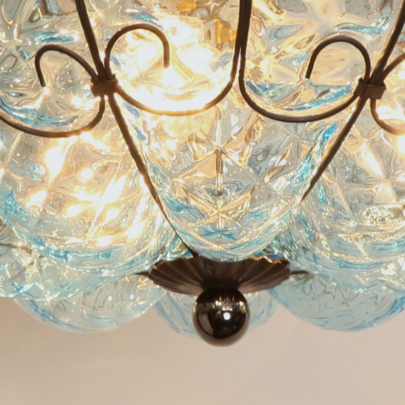 ムラノガラスおしゃれな形の3灯シーリング照明 ブルー イタリア製