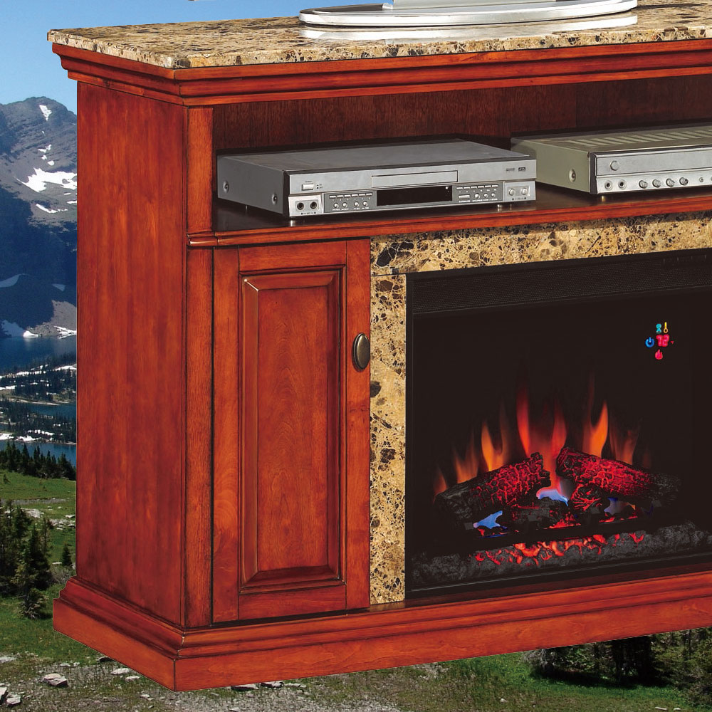 すてきなマントルピースに本物そっくりにゆらぐ炎を演出する工事不要の電気暖炉本体を装備し、高級家具としての風格も充分備えております。