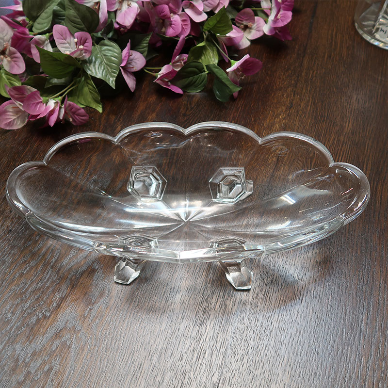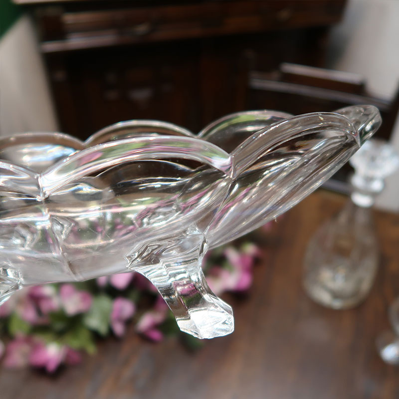 イギリスより直輸入したアンティークガラスのオーバル型脚付きボウル・コンポート(大)