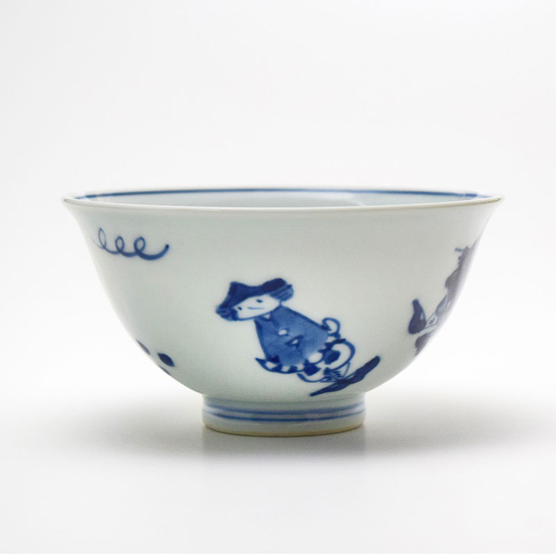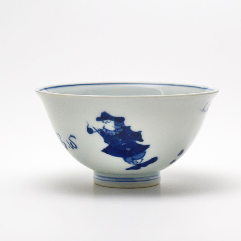 異人づくし 3.5寸反飯碗 青花 有田焼