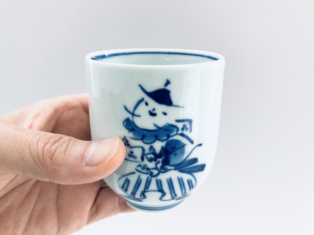 オランダ万才小湯呑 青花 有田焼