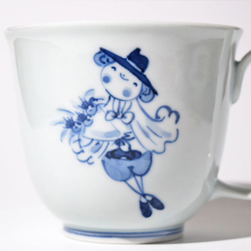 クローバーとマント異人 フリーマグカップ(大) 青花 有田焼