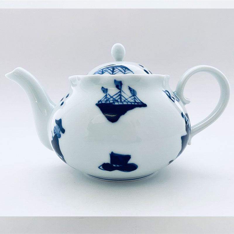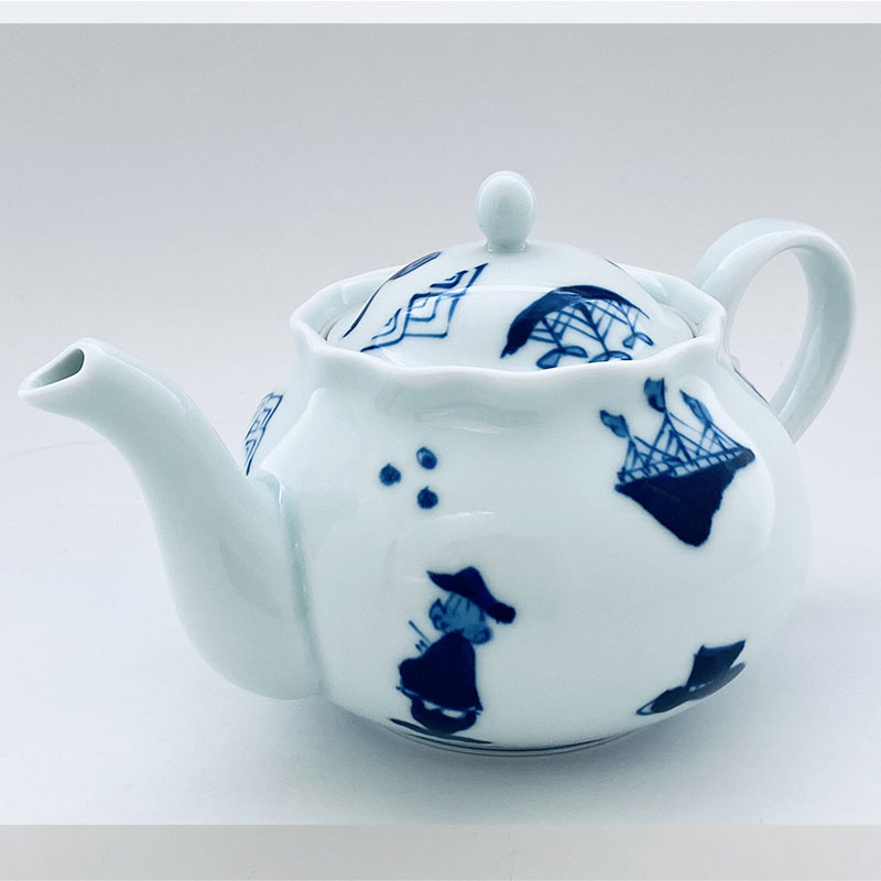 渕のフリルが華やかで 、容量も大きく使いやすいポットに、人気の絵柄「異人づくし」をあしらってみました。お届は、通常1週間前後ですが、在庫切れの場合は、手作りの為、少々お時間をいただくことがございます。その場合は、メールかお電話にてご連絡いたしますので、よろしくお願いいたします。
