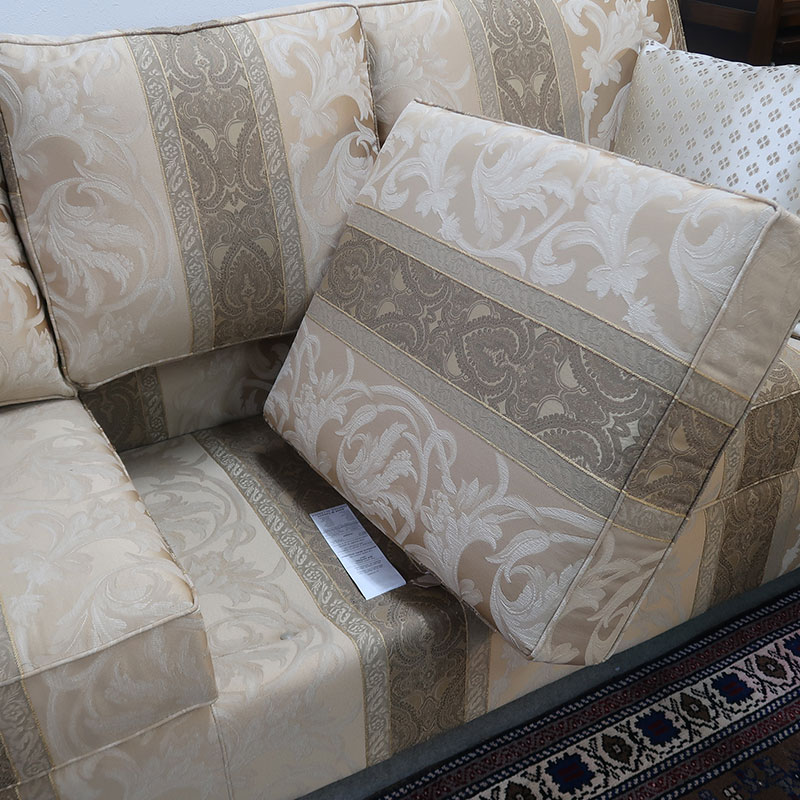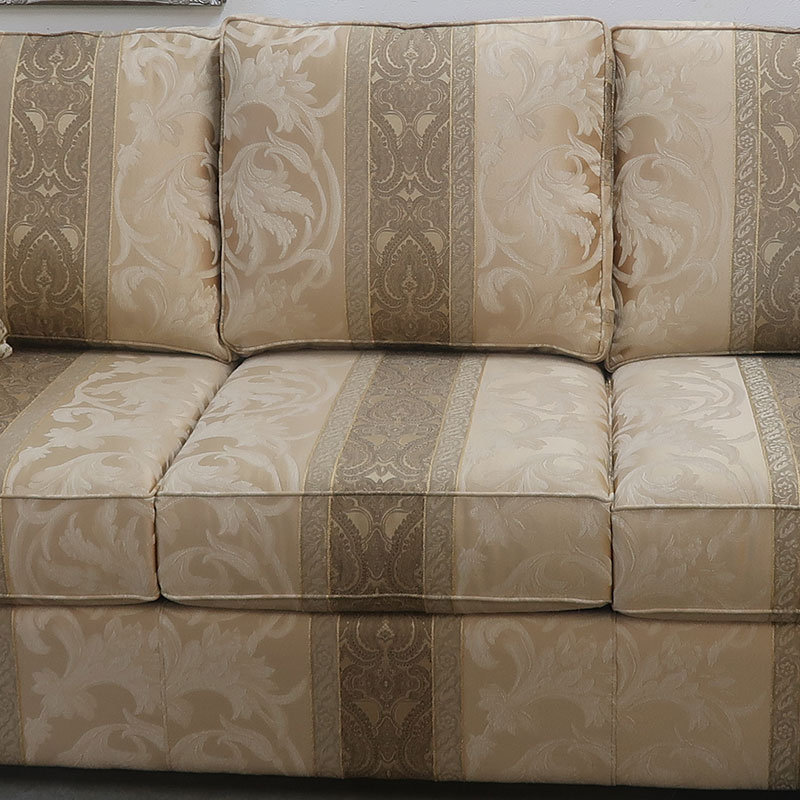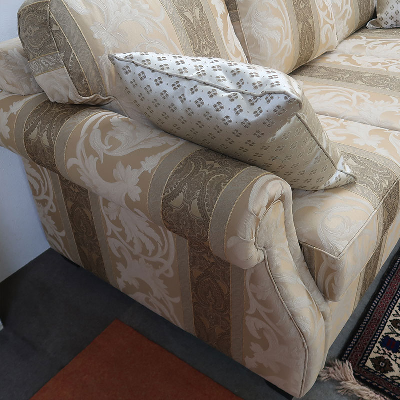 豪華なゴールド色系の縦にストライプを入れた折柄ファブリックは、やはりカナダ製ならではの高級感とコイルスプリングを使用した包み込まれるようなかけ心地は圧巻です。