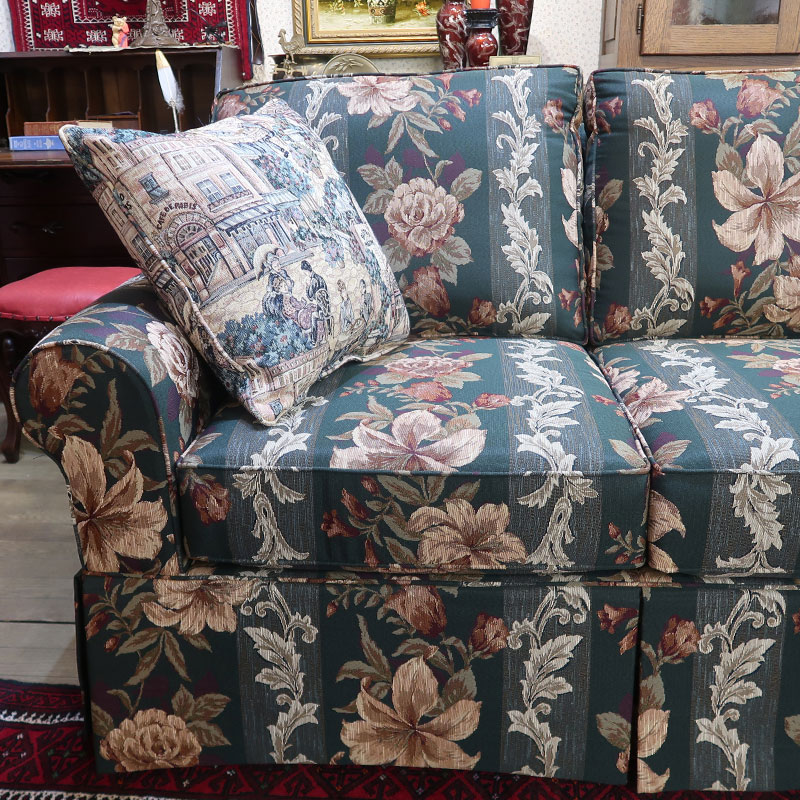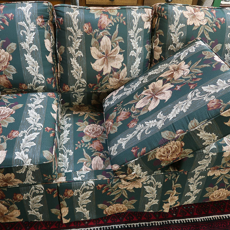 色濃いグリーンに大胆な花柄、クラシックの家具たちにも愛称抜群。