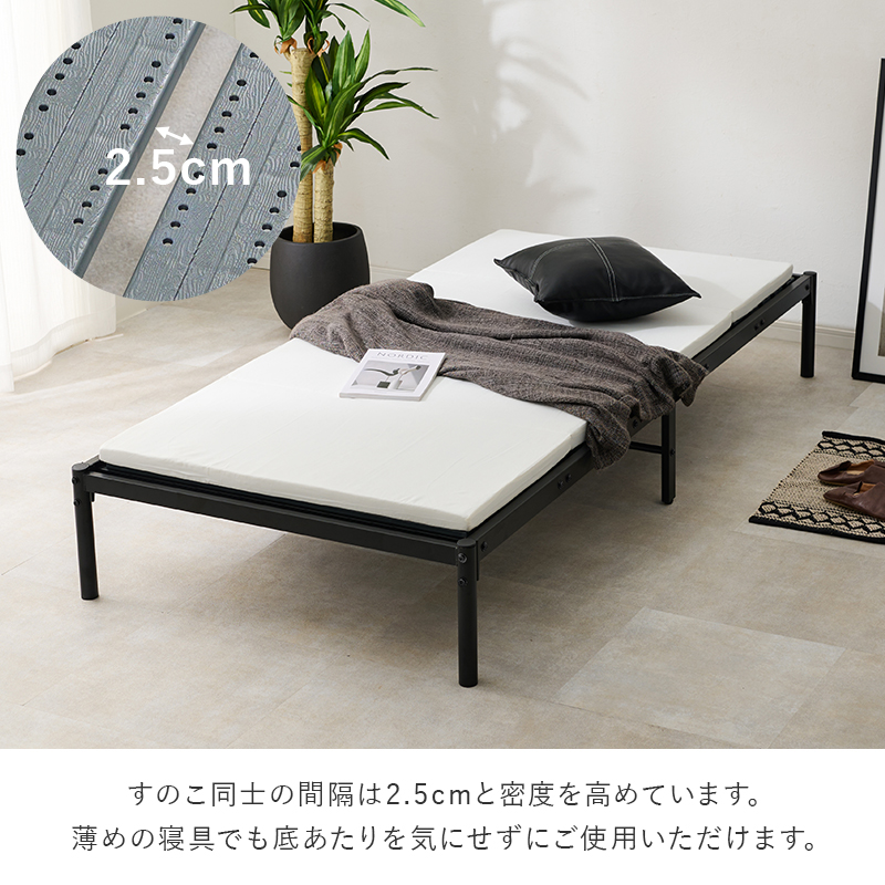 (北海道、沖縄、離島等一部地域除く)お手入れがしやすい樹脂製のすのこを使用したシンプルなデザインのシングルパイプベッド