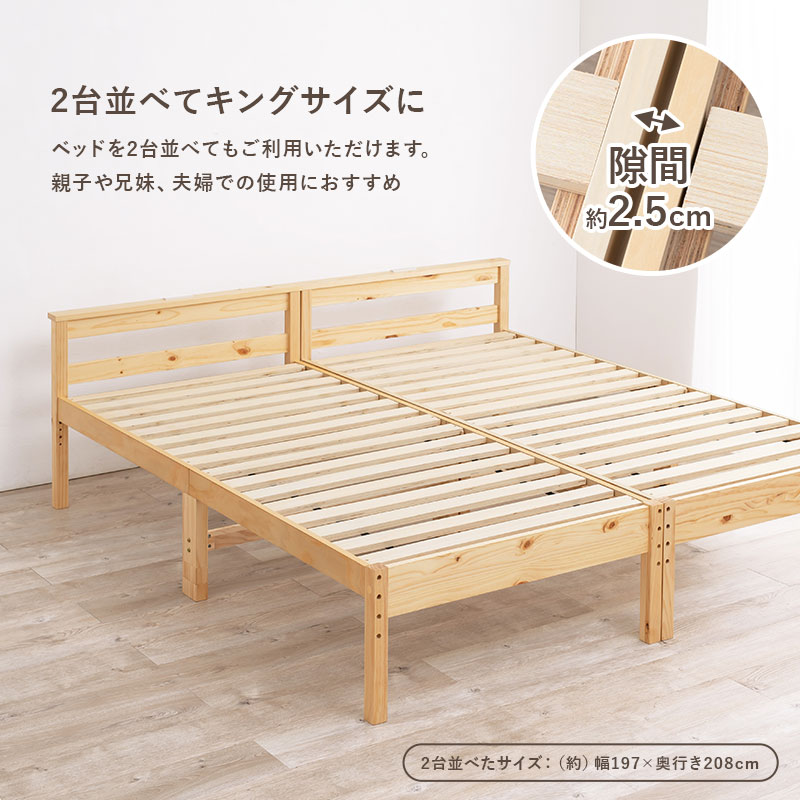 (北海道、沖縄、離島等一部地域除く)コンセントが便利な宮棚付き、床面高さ調節可能な天然木すのこベッド