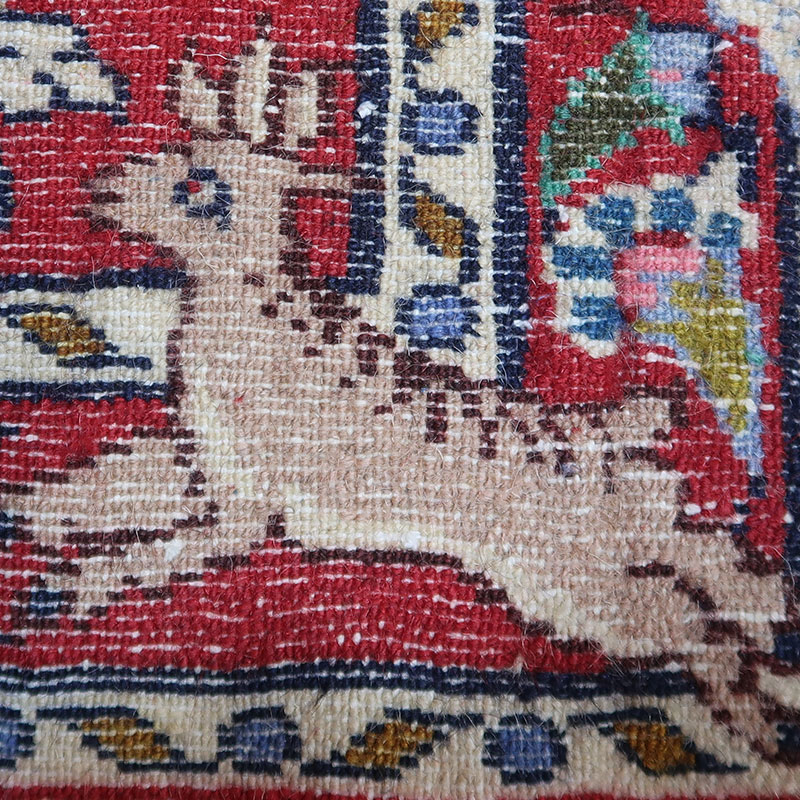 こちらの手織り絨毯は、動物などがモチーフにデザインされたとても珍しい貴重なサルークで製作されたペルシャ絨毯です。