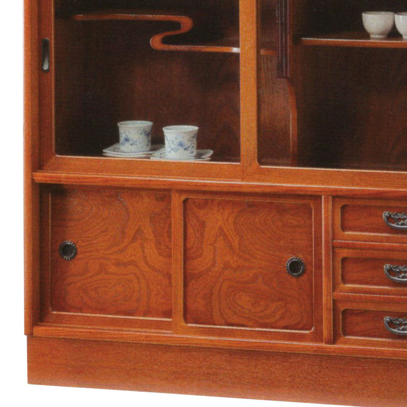幅90cm幅の前板にケヤキのきれいな木目を生かしたリーズナブルな和茶棚 高砂