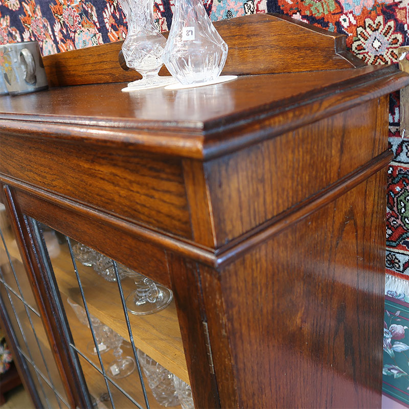 英国から届いたオーク材のアンティーク本棚ステンドグラス扉のおしゃれな猫脚ブックケース