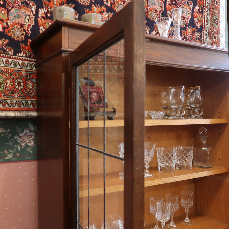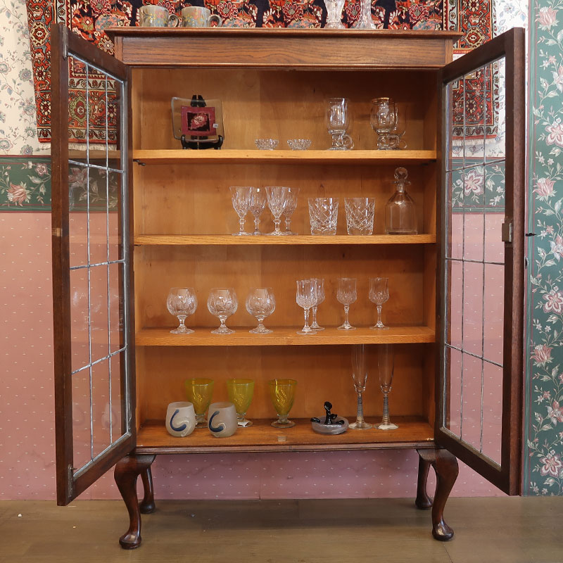 ステンドグラス扉のおしゃれな猫脚の本棚(ブックケース)です。