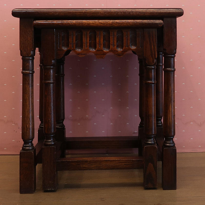 英国から届いたアンティークのおしゃれなオーク材のネストテーブル