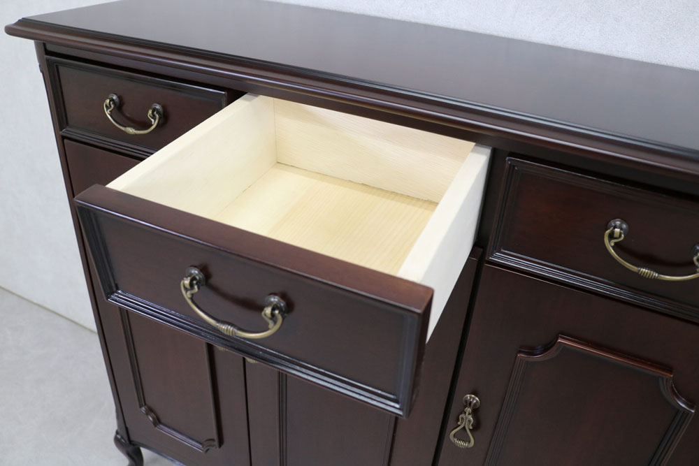 ケントハウスの猫脚の120cm幅ミドルテレビボードは、英国調のクラシックスタイルで人気です。