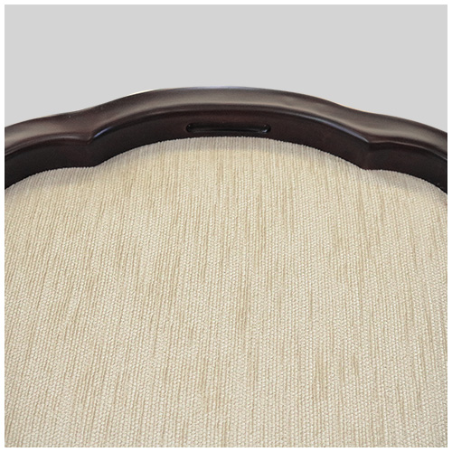 (沖縄、離島等一部地域を除く) 天板左右に弧を描いた表面にマホガニー材突板の逆ダイアモンド貼りを施し、落着きあるダーク色に仕上げた幅180㎝のテーブルと、優しく背をサポートする曲線フレームと、ソフトタッチのベージュのファブリックが映えるチェア-Dのエレガントな7点セットです。