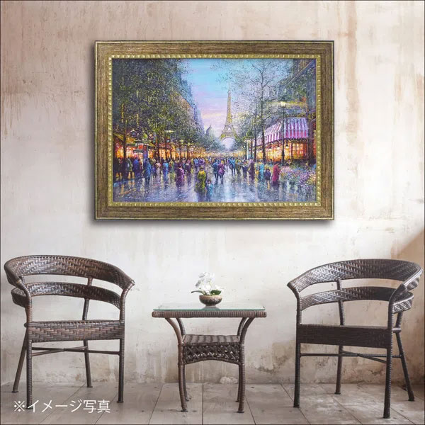 ポスターにアクリル樹脂絵具を塗り熟練の職人により質感を出すためにペインティングナイフや様々な道具を使って表面に凹凸を表現します。 一枚一枚、手作業により丁寧に質感を出します。そのため、時間がかかり、また、樹脂絵具が乾くのにも時間がかかります。 ですので、ストックが無い場合は、少々お待たせすることがございます。 予め、ご了承ください、。ギィデサップ「春のエッフェル」 絵画・アート 【送料無料】