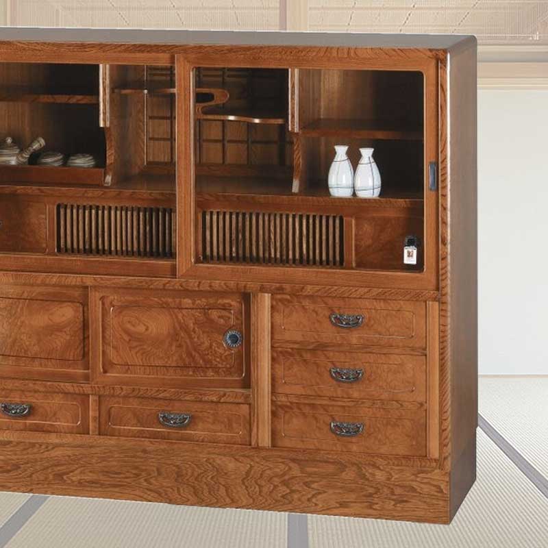 121cm幅のケヤキ突板使用の木目がきれいな和茶棚(奥行き41cm) 天城