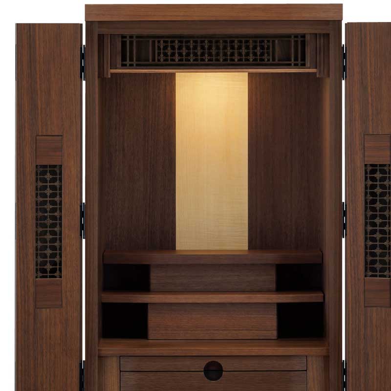 ウォールナット無垢材の扉を使用した国産インテリア仏壇-カリーナDX。